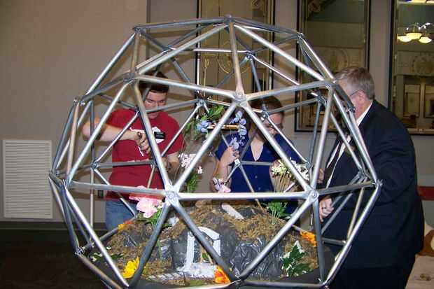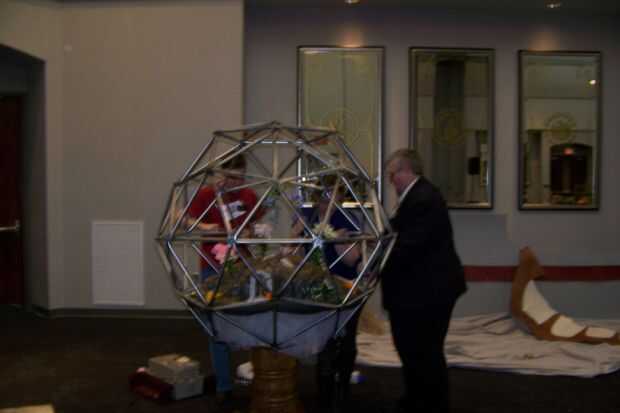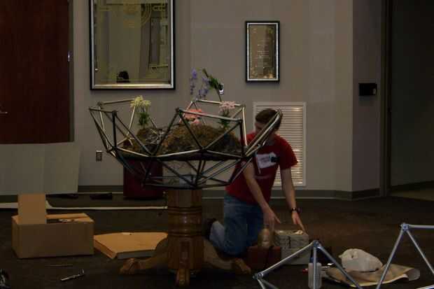 Llegué a configurar la tabla de base sobre la salida de la planta y enchufar la tira seis, mp3 player, altavoz y adaptador de la C.C. él y guardar en la base de trabajo. Puse la mitad de la esfera en la base y había agregada el sujetador. Luego puse la bandeja en la media esfera y mi amiga y empecé a soldar y resolución de problemas lo antes posible. Yo no había marcado que cables pertenecieron a lo que tan bien como me hubiera gustado, pero un buen trabajo marca los cables positivo y negativo, lo hago la soldadura era aceptablemente simple además de no luz, o espacio para maniobra en, jaja.