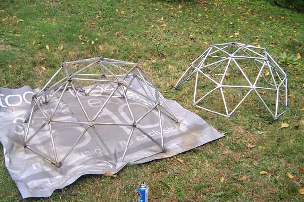 Antes de pintar o incluso tratar de colores conseguí una pistola de calor (puede probablemente usar un secador de pelo en su lugar) y calentar las pegatinas de código de barras en el conducto y luego lentamente pelados les lejos. Probablemente debería haber hecho esto antes de cortar el tubo, ¿EH? Luego tengo un bote de aguarrás (se puede comprar en el supermercado o la ferretería cerca de la sección de pintura) y había empapado una toalla de papel en él. Me frota liberalmente en todas las áreas pegajosas a la izquierda de las etiquetas engomadas de la peladura. Esto se debe hacer fuera; ni siquiera pensar en hacerlo dentro por favor. Espíritus de mineral es una sustancia extremadamente inflamable. No utilizar toallas que desea mantener, porque si se pasa por el lavado podría estallar en llamas en algún momento al azar, que sería totalmente divertido. Dejó los dos domos/esfera seca para poco a poco hasta que no huelen como las cosas ya.