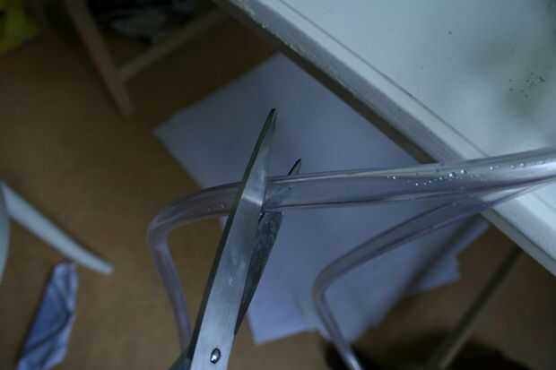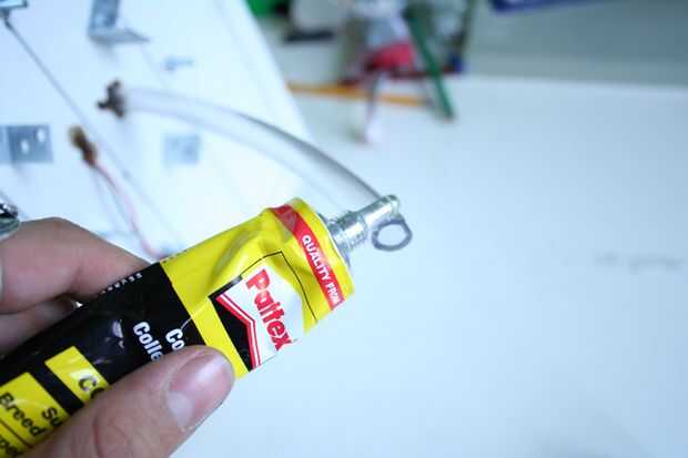 Corte un poco y luego empuje en el tubo de salida de la pompa de agua. usé pegamento para mantenerlo togtheter (un pegamento componente) y que proporción utilizo cinta también.