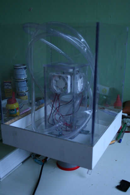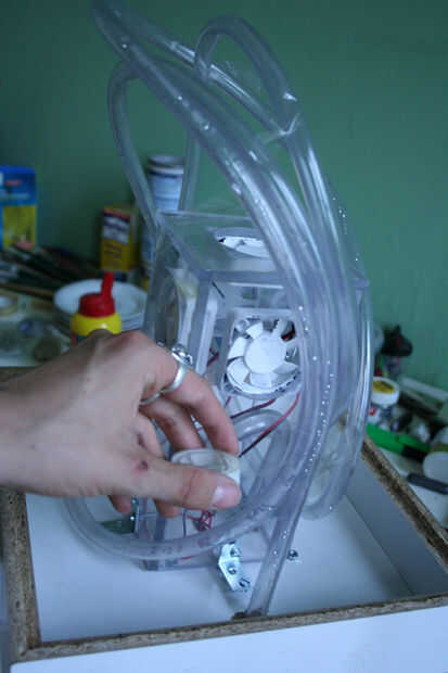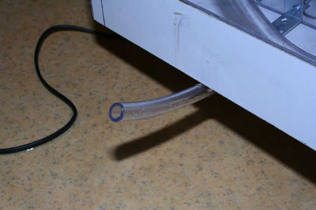 Empecé primero por poner la manguera en el compartimiento de refrigeración y luego a la parte inferior, donde se une la pompa de agua. y entonces el compartimiento de enfriamiento en la parte inferior.