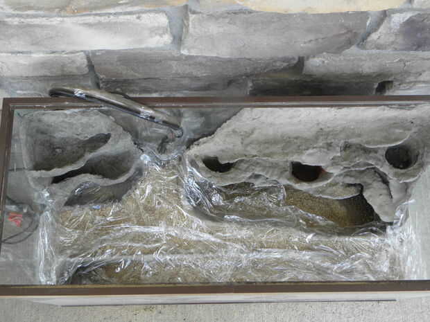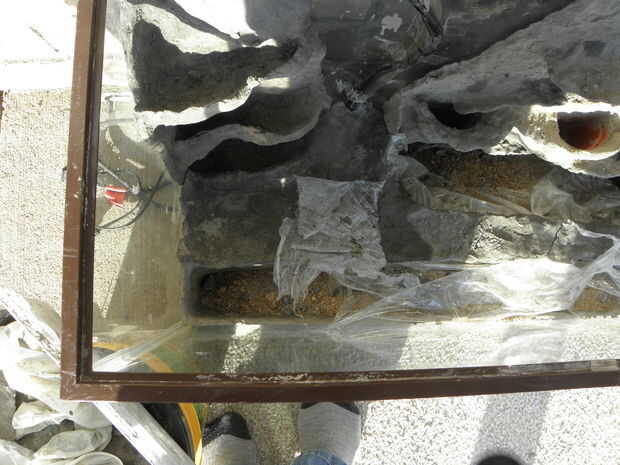 Iniciar en los bordes del tanque y crear una serie de piezas sólidas, pero manejables. Después de terminar de una sola pieza, poner un pedazo de abrigo de saran sobre él antes de construir la pieza siguiente. De esta manera, usted tendrá que se enclavija pero piezas separadas que luego pueden ser removidos individualmente.