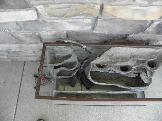 Usted tendrá que acceder al filtro en algún momento. Tienen que limpiarse periódicamente y por lo menos, tienen que cambiarse cuando se rompen. Esta es la razón que hizo ningún intento de construir el filtro en la función de cascada y por qué he decidido dejar los cordones visibles en la parte posterior del recinto.