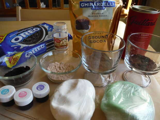 El propósito de la capa de grava o gravilla en un terrario es proporcionar un drenaje y evitar que las raíces de la planta de sentarse en el agua y causando pudrición y muerte a las plantas. Podemos hacer nuestros propios comestible río piedras para nuestro terrario con modelo chocolate, migas de Oreo, colorante alimenticio y cacao en polvo.