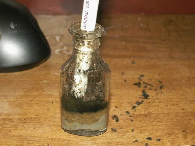 El carbón de leña es muy importante mantener el interior de su terrario vivo y limpio.  Utilice el embudo y el sabotaje para poner una capa de carbón sobre la arena.