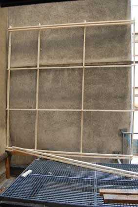 la idea era construir un techo y establecer luego para facilitar el ajuste del ángulo del techo. se trata de la construcción con madera de 24 x 48 mm.