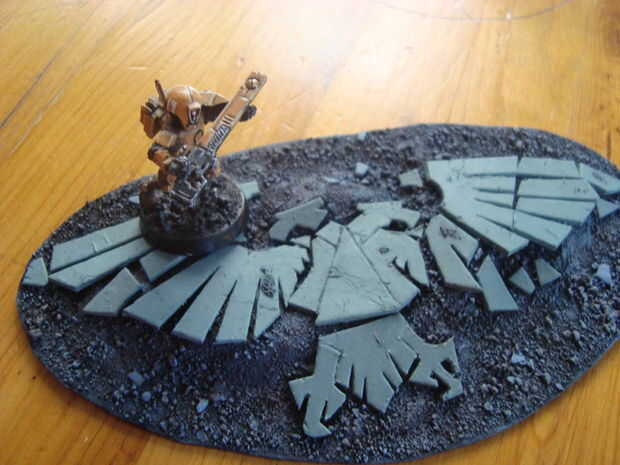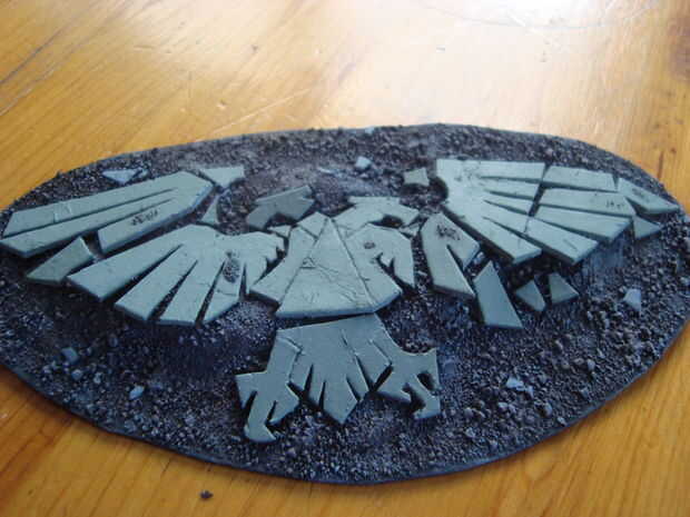 La Aquila es el símbolo del ejército guardia imperial en el juego Warhammer 40K. Vi un pedazo de terreno en el sitio web de Games Workshop. Realmente me gustó la aquila grietas en el suelo y pensó parecía bastante simple y id de tratar de hacer uno yo mismo. En juego esta pieza sólo actuaría como un terreno difícil.
