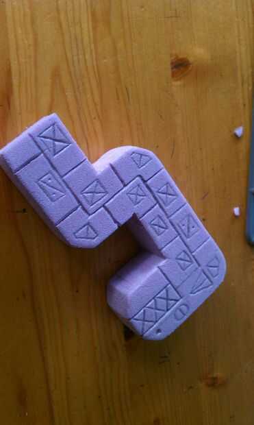 Tallar un diseño en el otro lado. Ir sobre él y asegúrese de que todo el diseño ha marcado bastante profundo. Añadir algunos daños de batalla y evidencia de que la piedra es viejo. Corte desmoronando a rincones y grietas.