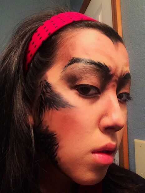 A lo que voy a un mapa donde quisiera que mi "pelo" para empezar en mi frente y mis mejillas. De allí a añadir en relieve y profundidad con mis paletas ahumadas. Asegúrese de que su cabello se integra en su línea del cabello natural. He incluido un perfil lateral de cómo hice mi pelo golpes. Después de sentir como termines, deja tu cabello suelto a ver si os gusta cómo han resultado sus patillas de hombre lobo.