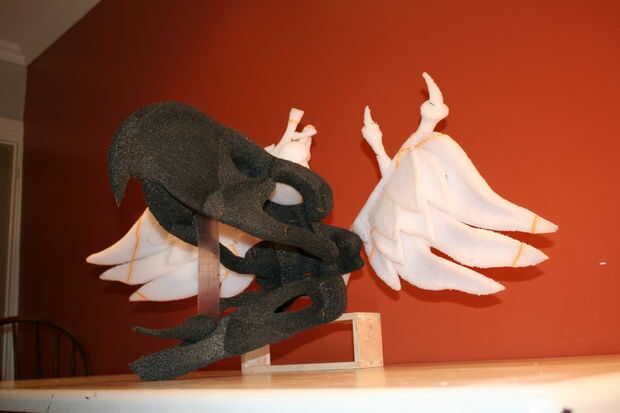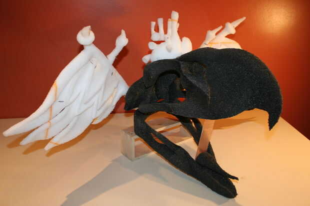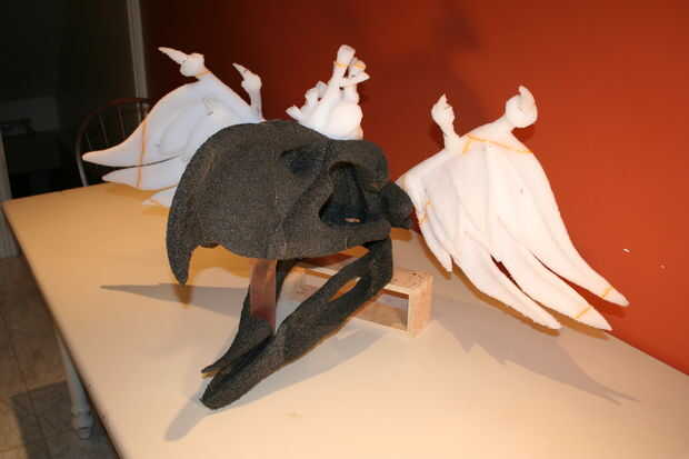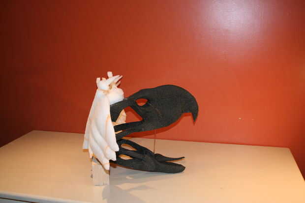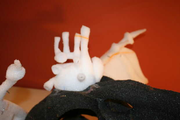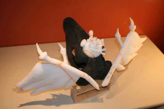 Formación de cuero de los muebles utilizando yeso forma-formas. Pegamento PVA (para madera), cuero curtido de cromo (para muebles), pintura de la cartilla con alcohol, pincel de aire, crin de caballo y su fantasía puede crear en yeso forma (cerdo) ta