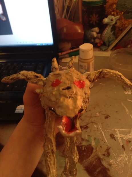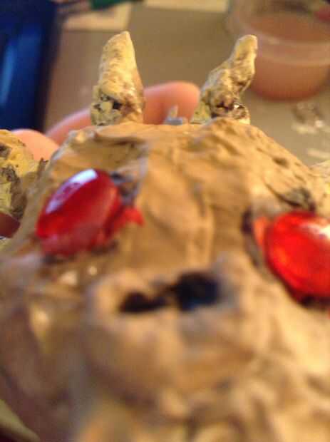 Ahora sólo caliente pegar tus dos adhesivos rojo brillantes para los ojos.
