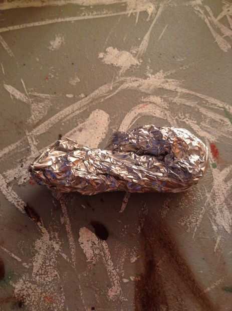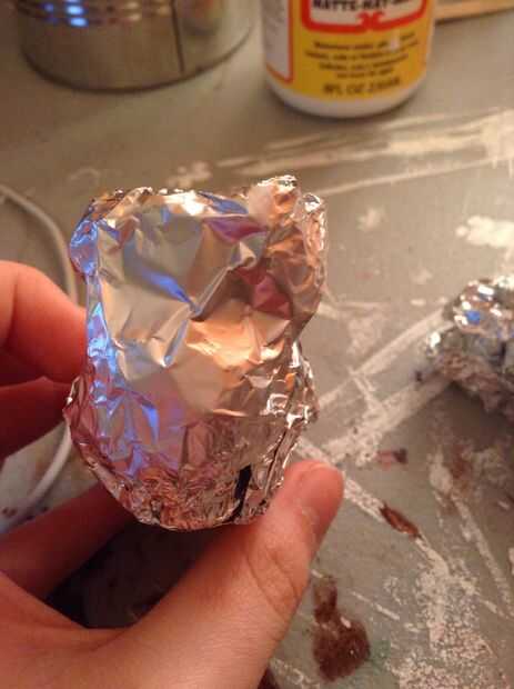 Otra vez, toma las hojas largas de papel de estaño y forma como arcilla. Asegúrese de que el cuerpo es más regordete en la zona del hombro y el pecho.