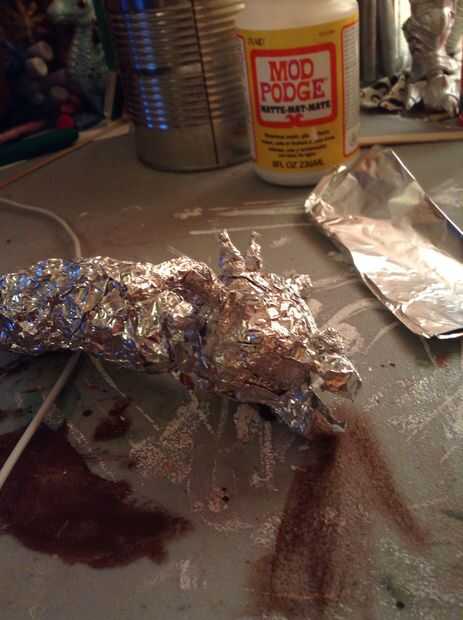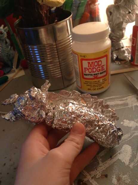 Luego, corta un patrón ondulatorio embotado de otra hoja de papel y pegamento caliente por parte trasera de su perro de terror para formar los picos.