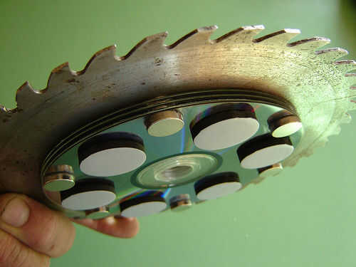 La idea básica de la fijación de la lámina Skilsaw es utilizar el acoplador magnético para fijar magnéticamente en la hoja, manteniendo alineado en el orificio central. Es preferible poner un corte 5/8" perno o perno en el centro para evitar que el disco centrado en las velocidades. (cualquier bamboleo fuera del centro sería puro desastre!)