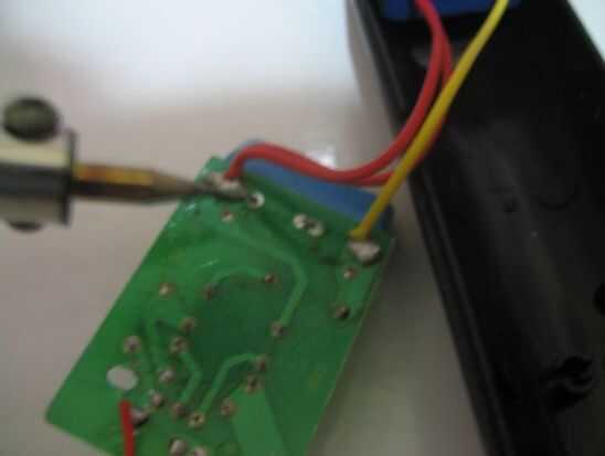 35. usando una soldadura para conectar el otro cable (negro) con el extremo del cable del altavoz