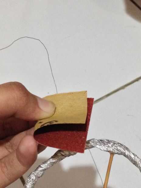 14. papel de lija el extremo restante del cable del imán superior