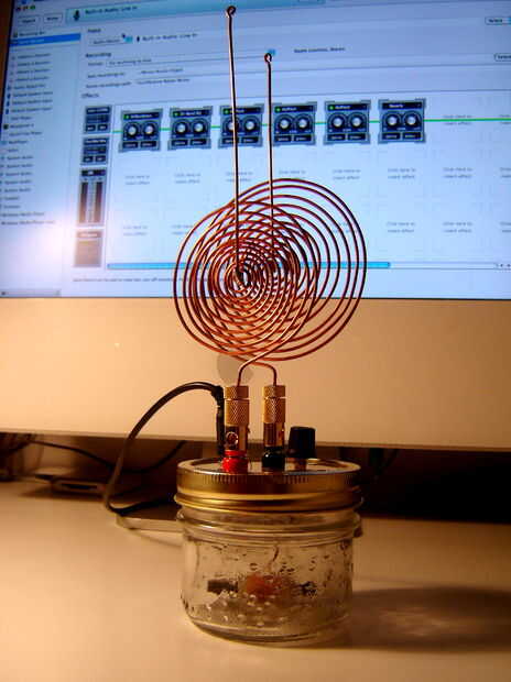 La espeluznante Radio espíritu de Tesla es mucho más que un circuito de radio de cristal en una jarra de mermelada. Es una máquina de sonido que se conecta a un ordenador y hace sonidos espeluznantes impresionantes respondiendo a campos electromagnéticos o fuentes de luz en tiempo real.
