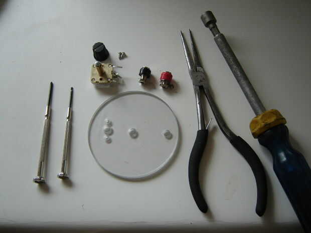 Para el condensador variable, tuve que encontrar dos tornillos lo suficientemente largos para abastecerlo a través de la cubierta gruesa de 3/16 de pulgada. Una cubierta más delgada trabajará con los tornillos estándar. La tapa de la variable tiene un kit de perilla y extensión de eje opcional en http://comtrolauto.com/