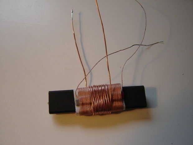 Me gusta el método inductivo incluso con una antena corta, porque da una señal más clara con menos zumbido de 60 ciclos. La amplitud del sonido será menor en a menos que una antena larga se utiliza sin embargo de sintonización de AM. La amplitud puede ser formada parcialmente utilizando el cuerpo humano como una antena tocando el anillo de tarro de mermelada, que tiene un cable de conexión que va a la antena + cable cuando la tapa está torcida en.
