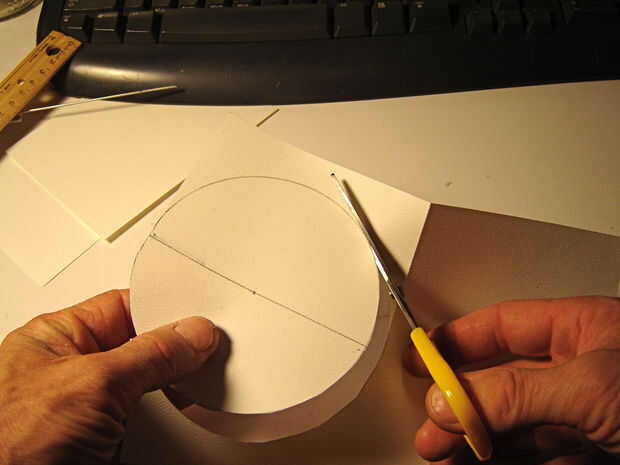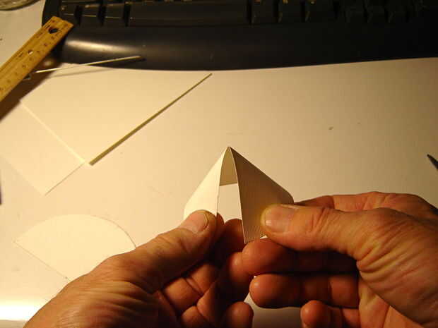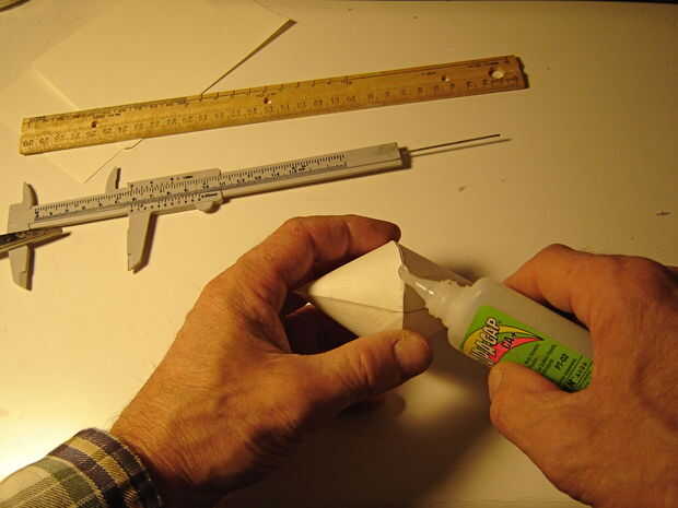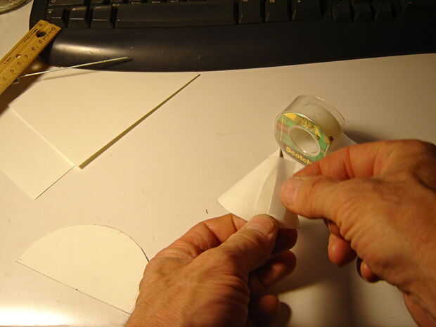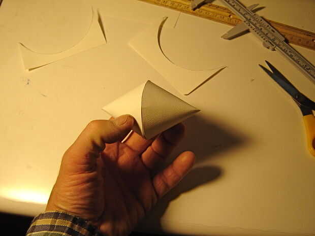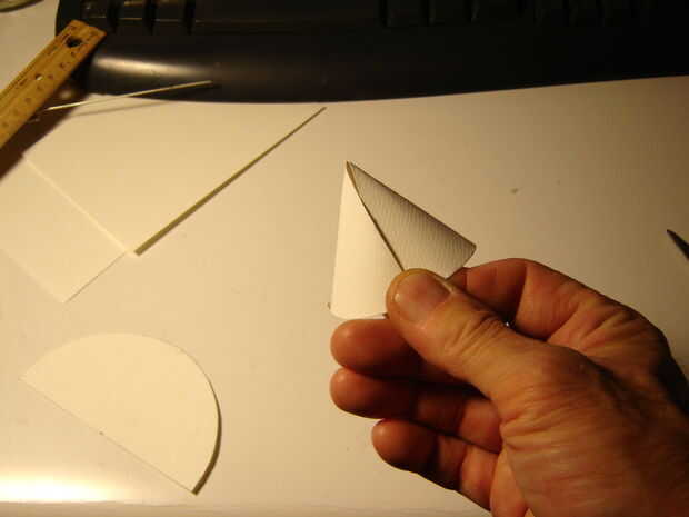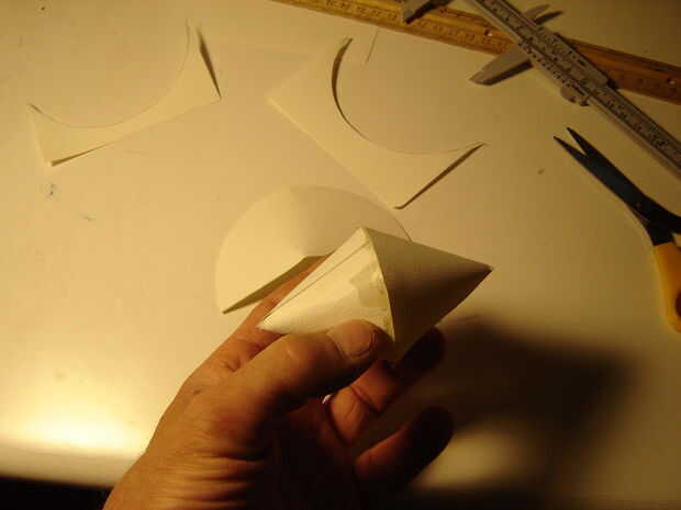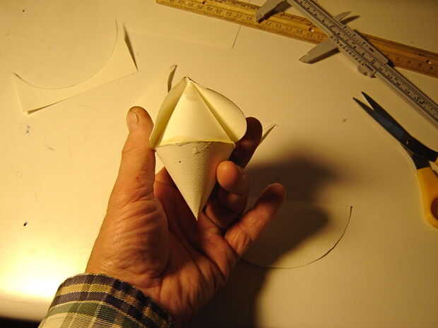 La base de la antena de Tesla del fútbol se hace con cuatro conos de papel de 2 pulgadas pegados y grabado juntos. El papel de conos fueron doblados para arriba, dos a cada lado, para la fuerza y suavidad.