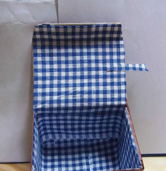 Usted también puede pegar tela en el interior de la caja de relleno y que abarca hasta el interior de la caja de la chatarra. (ver primera foto) No quiero que se sepa lo que compraste...