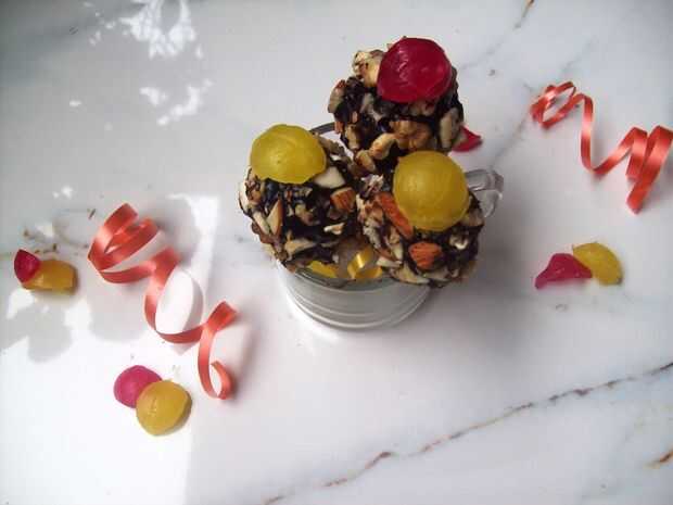 • Cubren los estallidos de la mezcla de chocolate sobrante de 1/4 y luego por frutos secos.