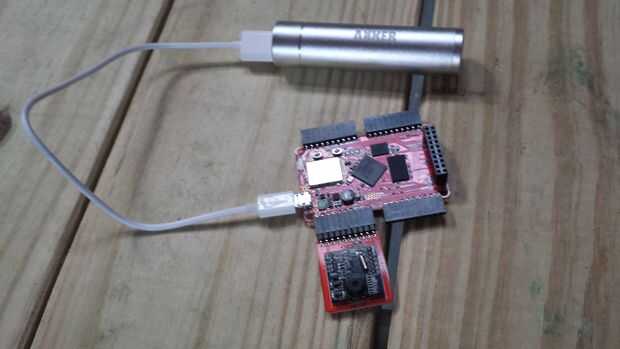 - Ahora ejecute 'tessel ejecutar camera.js - subir-dir.'. El indicador de carga-dir permite especificar dónde se guardan las fotos.