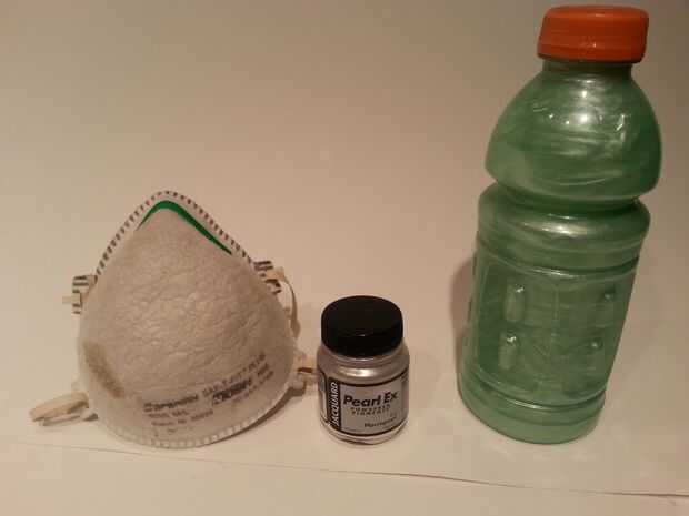 Opté por usar polvo de Mica como Omni-Diy en su Instructable. Al igual que él también decidió usar un producto llamado "Pearl EX" normalmente se utiliza en arte para hacer el brillo de la pintura. La concentración de polvo de Mica es realmente suya. No hace falta mucho para conseguir el efecto; sólo uso de ensayo y error :) si añades demasiado te siempre puede agregar más agua para diluir abajo. Si usted planea usar cambiar de color las luces el do no añadir colorante a la mezcla. Si sólo desea un color agregue el color de su elección e iluminar con luz blanca.
