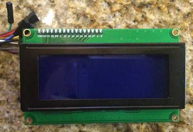 Realmente no tuve ningún problemas para conseguir la pantalla para trabajar. La pantalla de 2 x 16 caracteres incluida en mi kit Arduino no funcionaba así que pedí una pantalla de 4 x 20 caracteres y trabajó la primera vez que lo probé.