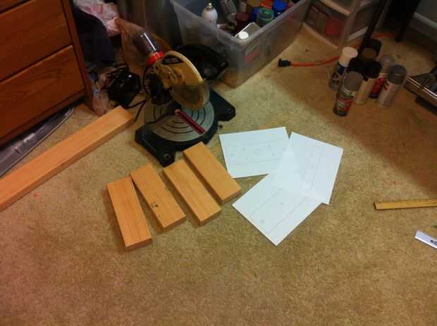 Es muy importante que todos los agujeros se perforan en ángulo recto. Montar la base sobre una superficie plana para mantener la Plaza. El marco acabado será ajustable pero si construyes demasiado torcido nunca podrás ajustar eso. Ver el esquema adjunto como guía para la fabricación de las piezas de madera. Revisa las notas sobre las fotos para más detalles.