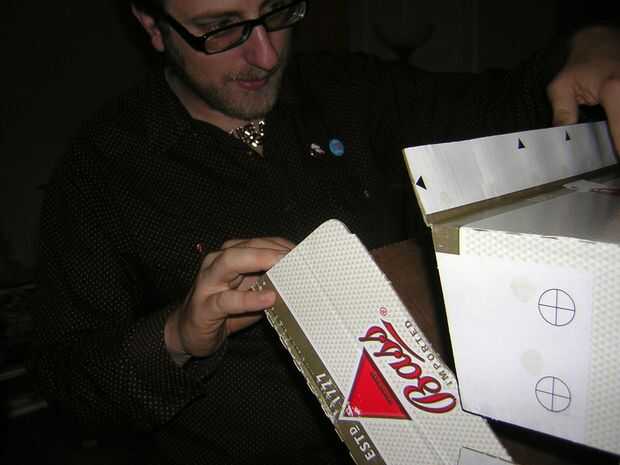 Radio de cristal para ir: un receptor portátil, batería de cristal en una caja de Pizza