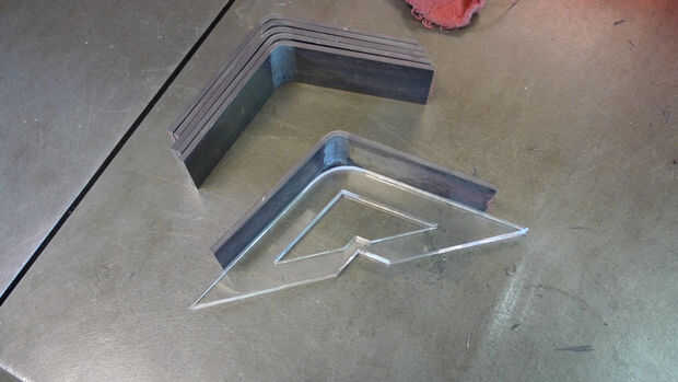 Utilizando la plantilla del ángulo de corte por láser, utiliza la rotura del metal para que coincida con el ángulo que necesitaba.