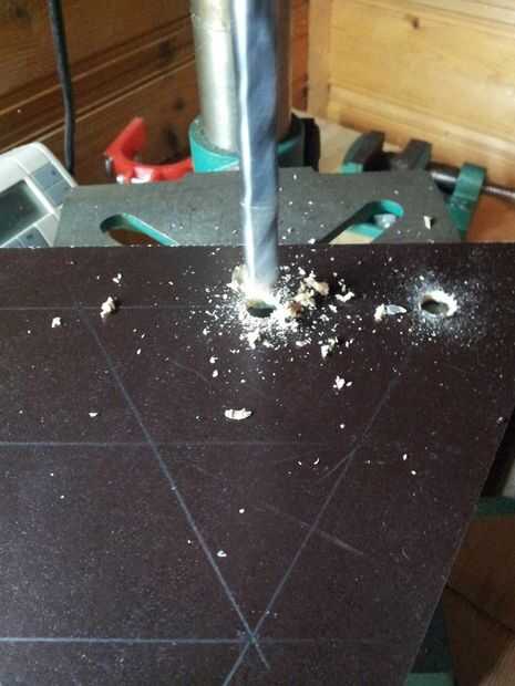 Tintas formas werden estoy einfachsten mit einer Standbohrmaschine durchgeführt, en die ein 12mm-Holzbohrer eingespannt ist. Natürlich ist auch hierzu jede andere geeignet Bohrmaschine, nur geht es tan schneller und präziser.