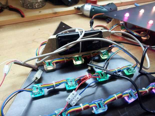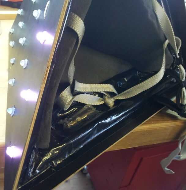 Zur Unterbringung des Akkupacks und des Arduinos wird auf die Rückseite zwischen der zweiten und dritten LED-Reihe ein passendes befestigt Brett. Je nach Bauteilen ist dann dafür zu sorgen, dass hier alles ordentlich und griffbereit verstaut ist, así que dass man nach Komplettmontage des Hutes noch una den Arduino und das Akkupack herankommt.