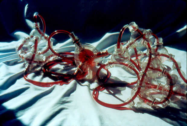 Hace años descubrí que podía hacer tetrápodos si combinar cuatro botellas de soda. Esto se convirtió en uno de mis primeros proyectos de escultura que evocan corazones artificiales.