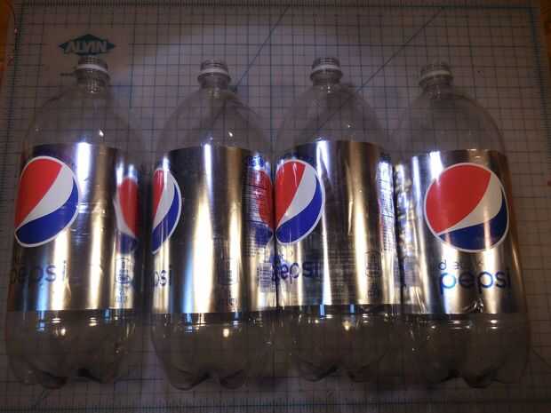 Pepsi: La mayoría de las botellas de Pepsi es fuerte y tiene la forma correcta. Evitar las que tiene adornos en el hombro.