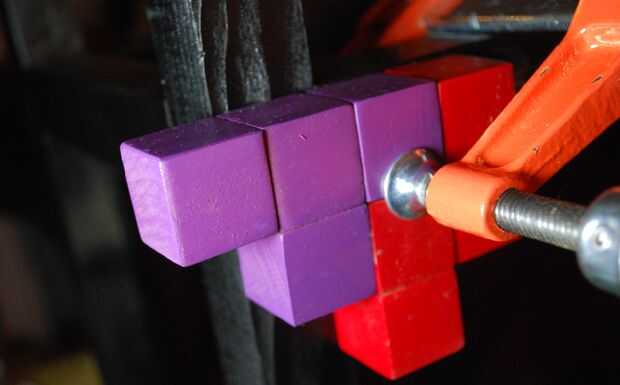 Las filas de la parte inferior también pueden dispuestas y pegadas en este momento. Me pegan en grupos pequeños y les fija a lo largo de las barras laterales de la parte inferior con las abrazaderas. Esto le permite trabajar en este paso mientras la tabla está en el revés de la posición desde el principio.