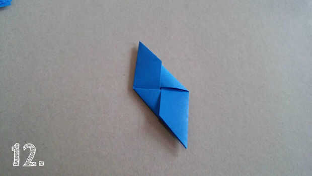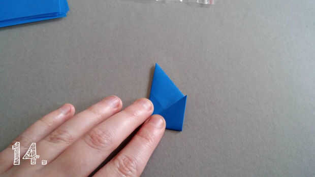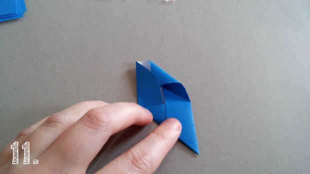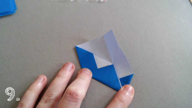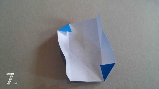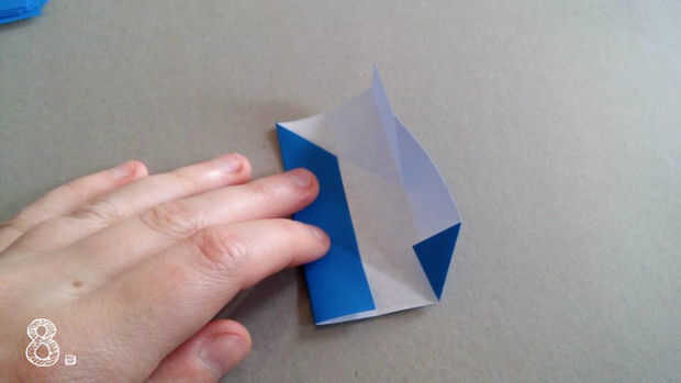 7. abrir la derecha y doblar en el triángulo pequeño en la parte inferior derecha
