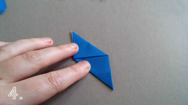 6. abrir el lado izquierdo y doblar en el triángulo pequeño en la parte superior izquierda