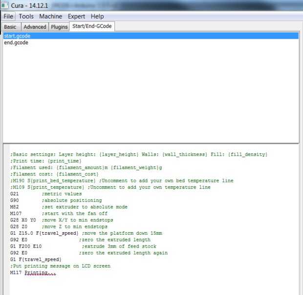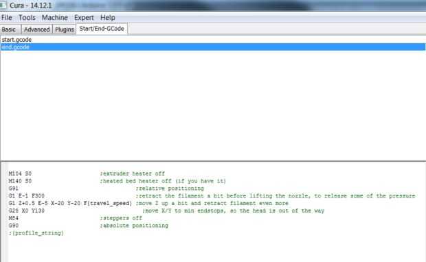 Inicio y fin GCodes (copiar/pegar en Cura):