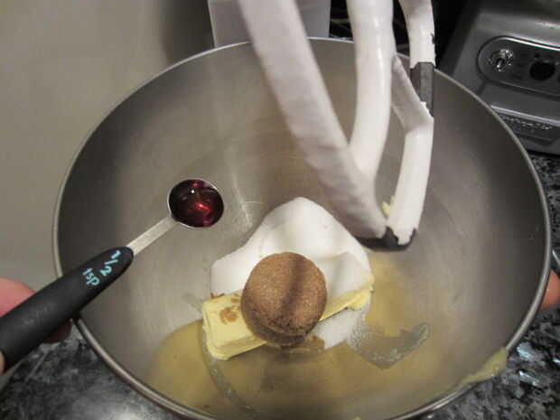 Poner todos los ingredientes excepto el huevo en la batidora. Cuando los ingredientes son en mezcla hasta estén totalmente Unidos juntos para hacer un color tannish.