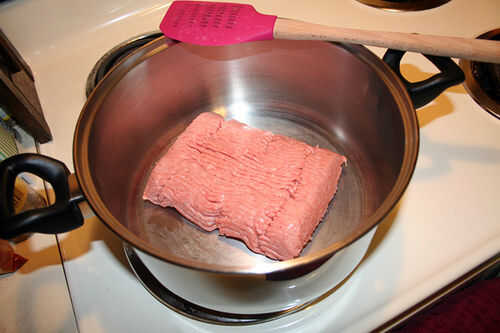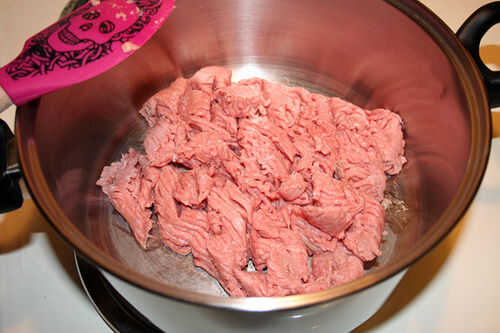 Establecer la estufa a fuego medio y agregue el pavo después de empieza a calentar. Usted querrá utilizar la espátula o cuchara para romper la carne picada en trozos más pequeños para que se cocine más rápido y hacer pequeñas mordeduras. Si comienza a quemar y pegar en la parte inferior de la cacerola, baja el calor, de lo contrario, mantenga cocina, revolviendo ocasionalmente, hasta que quede un color uniforme sin cualquier manchas rosas restantes.