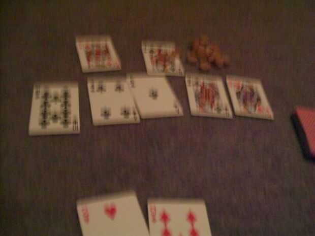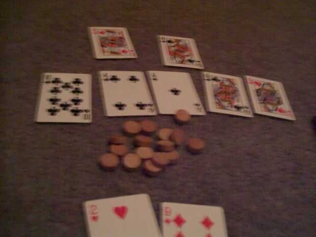 este es el momento donde el jugador revelar sus cartas. el opositor revela que tiene un rey y una reina. lo que significa que tiene un tres de una clase sobre nuestros dos de una clase. Esto significa que acaba de perder este juego, ya que todas las fichas apostadas al ganador... boo hoo...