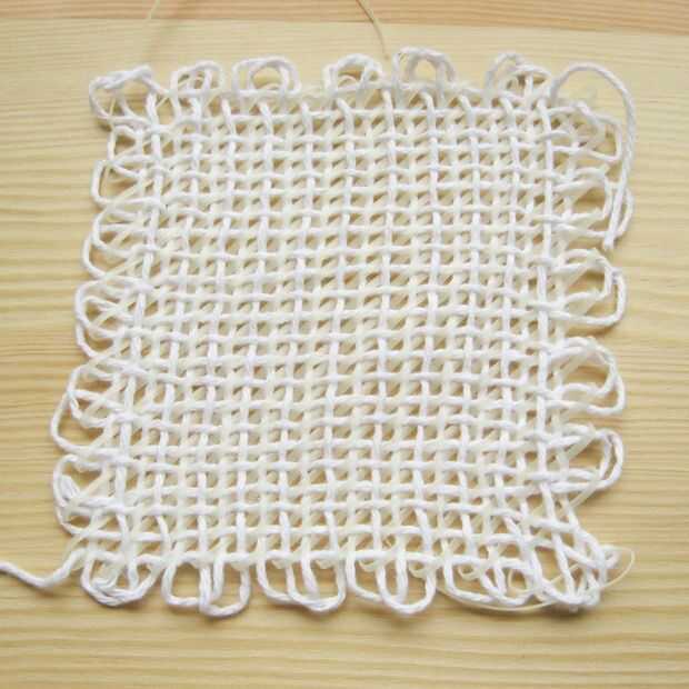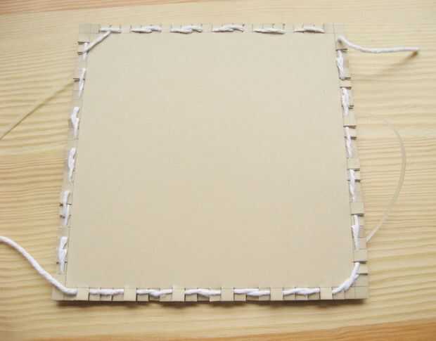 Voltee el telar y trabajar con cuidado los filamentos de las fichas de cartón.