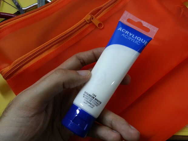 3. acrílico! Decido ir con blanco, como quisiera una idea del pack de "primeros auxilios". Emparejar el color con su color de paquete, mientras que es fácil de leer.