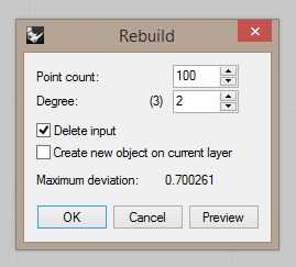 Para tener en cuenta el potencial de problemas la curvatura puede presentar, se sugiere que reconstruir las curvas importadas. El planteamiento que llevó a la reconstrucción de la curvatura era establecer la cuenta de punto relativamente alta y el valor de curvatura a 2; Esto quita todas las torceduras de las curvas de grado 3 teniendo un número suficiente de puntos de muestra para no perder detalle.