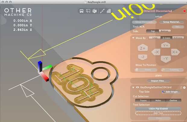 • Importar el fichero de placa en Otherplan y seleccione ya sea un molino de extremo 1/32 o 1/64". Asegúrese de seleccionar el material correcto en el diálogo de configuración Material.