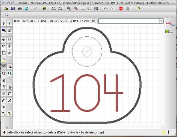 • Luego seleccione la capa "20 dimensión" y crear el contorno del objeto. El Othermill corta estas líneas todo el camino a través de la Junta.