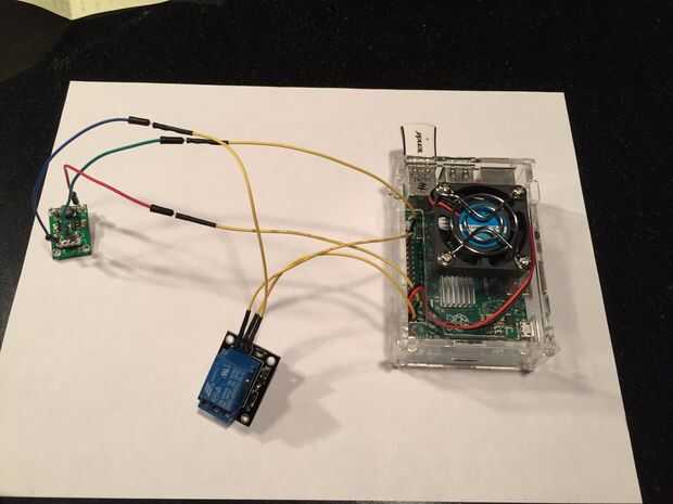 El circuito utilizado en este proyecto es muy básico; lo único que hace es activar el relé para unir los cables soldados a la cafetera en tecla de contactos.