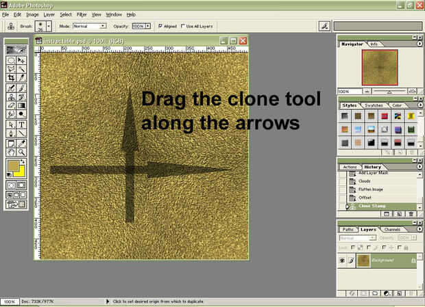 Ahora es el momento para usar la herramienta Tampón de clonar. Es la herramienta por encima de la herramienta Borrador (o simplemente puede presionar "s"). Mantenga Alt y haga clic en algún lugar de textura (no en los bordes que nos vamos de la fijación, aunque). Que tendrás que mantener pulsada la tecla alt y hacer clic en alguna parte en la textura.