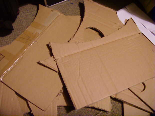 Lo primero en tu lista es cartón - no voy al azúcar de la capa; no cartón, no Übersaw. Tuve algunos cartón muy grueso de otro proyecto, que se puede ver en la foto superior. También vas a necesitar un cartón más delgado para los detalles pequeños en el cuerpo, pero vamos a llegar a eso más adelante.